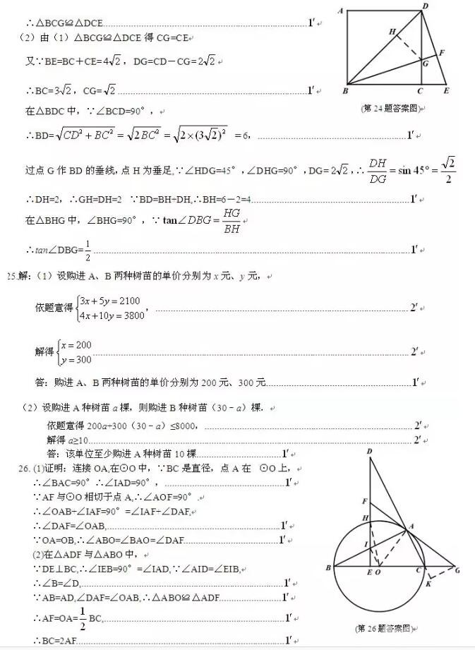 海南省2017年初中毕业生学业水平考试数学试题及答案(附下载)