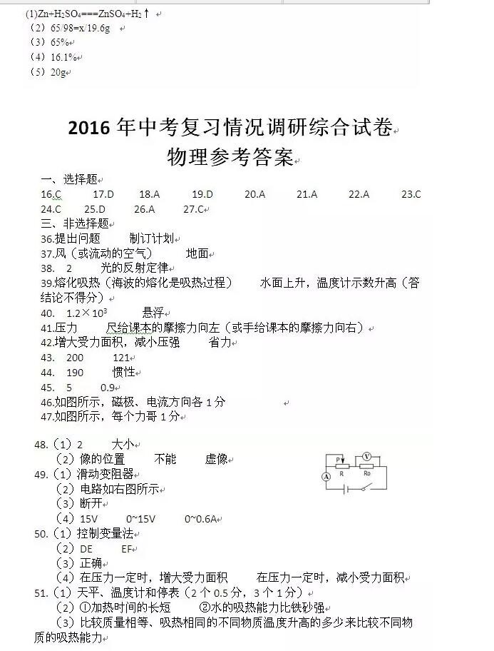 哈尔滨市2016年初四南岗区全区统考基础测试答案汇总(9)